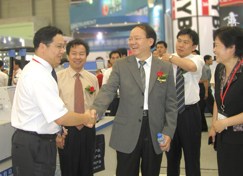 展會期間公司董事長李強專程到會參觀、了解行業(yè)及企業(yè)發(fā)展情況;中國紡織工業(yè)協(xié)會副會長高勇、中國棉紡織行業(yè)協(xié)會理事長徐文英、中國紡織報社社長遲宗君、中國工程院院士梅自強、陜西省發(fā)改委副主任曹云龍等領導、專家,都蒞臨長嶺紡電展臺,對我們的新產品進行了詳細地了解,并給與高度評價。