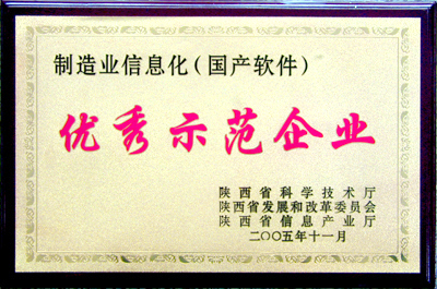 本刊訊 日前,在西安召開的 “陜西省制造業(yè)信息化工程‘十五’總結(jié)表彰會”上,我公司被授予 2005年度“陜西省制造業(yè)信息化(國產(chǎn)軟件)優(yōu)秀應用示范企業(yè)”稱號。