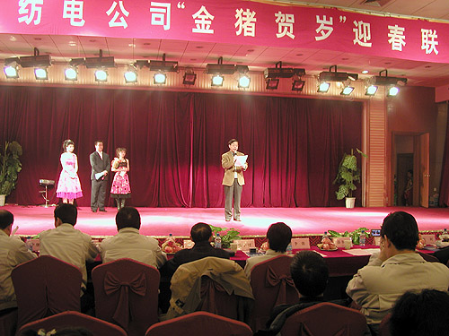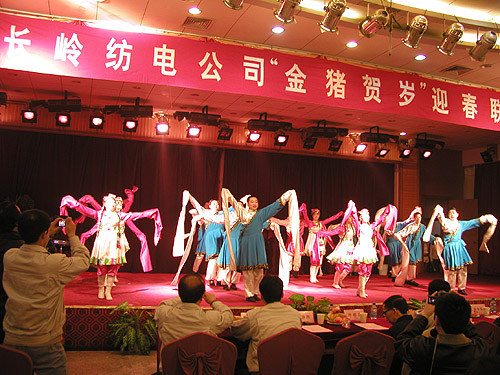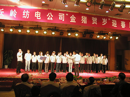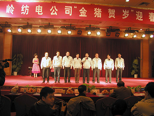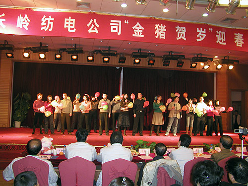 激情豪邁詠舊歲,輕歌曼舞迎新年。2007年2月13日,公司在寶雞萬利大酒店舉行了長嶺紡電“金豬賀歲”迎春聯歡會。公司董事長李強、總經理薛冬泉、公司領導班子以及老領導李友仁、老專家曾明高與公司500多名員工齊聚聯歡會。聯歡會現場張燈結彩,喜氣洋洋,空氣中滿溢著濃濃的節(jié)日氣氛。