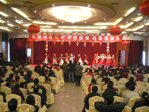 1月31日,公司在萬利大酒店舉行了“銀鼠獻(xiàn)瑞”迎春聯(lián)歡會(huì)。寶雞市國(guó)資委主任袁軍曉,長(zhǎng)嶺各兄弟單位領(lǐng)導(dǎo),紡電老領(lǐng)導(dǎo)、老專家李友仁、曾明高,紡電公司500多名員工及家屬齊聚聯(lián)歡會(huì)。聯(lián)歡會(huì)現(xiàn)場(chǎng)張燈結(jié)彩,喜氣洋洋,洋溢著濃濃的節(jié)日氣氛。