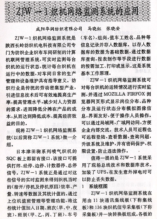 ZJW一1織機(jī)網(wǎng)絡(luò)監(jiān)測系統(tǒng)的應(yīng)用